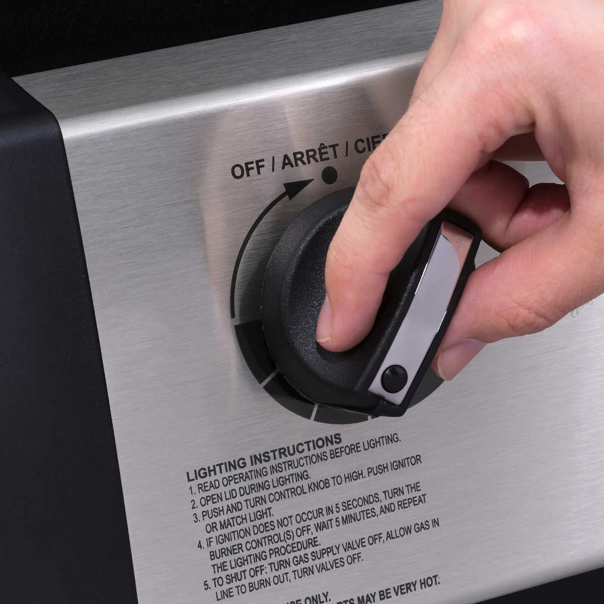 Der Gem ist mit 3 Edelstahlbrennern ausgestattet. Dank der abklapbaren Seitenablagen passt der Grill auf fast jeden Balkon. Durch den hohen Unterschrank wird Euch eine höhere Arbeitshöhe angeboten und die 11 kg Gasflasche kann im Unterschrank verstaut werden. Durch seine Ausstattung und das einfache Handling ist der Broil King Gem der passende Gasgrill für jeden Einsteiger. Für ein Maximum an Übersicht und Kontrolle der Temperatur sorgt das im Deckel integrierte Deluxe Accu-temp Thermometer.