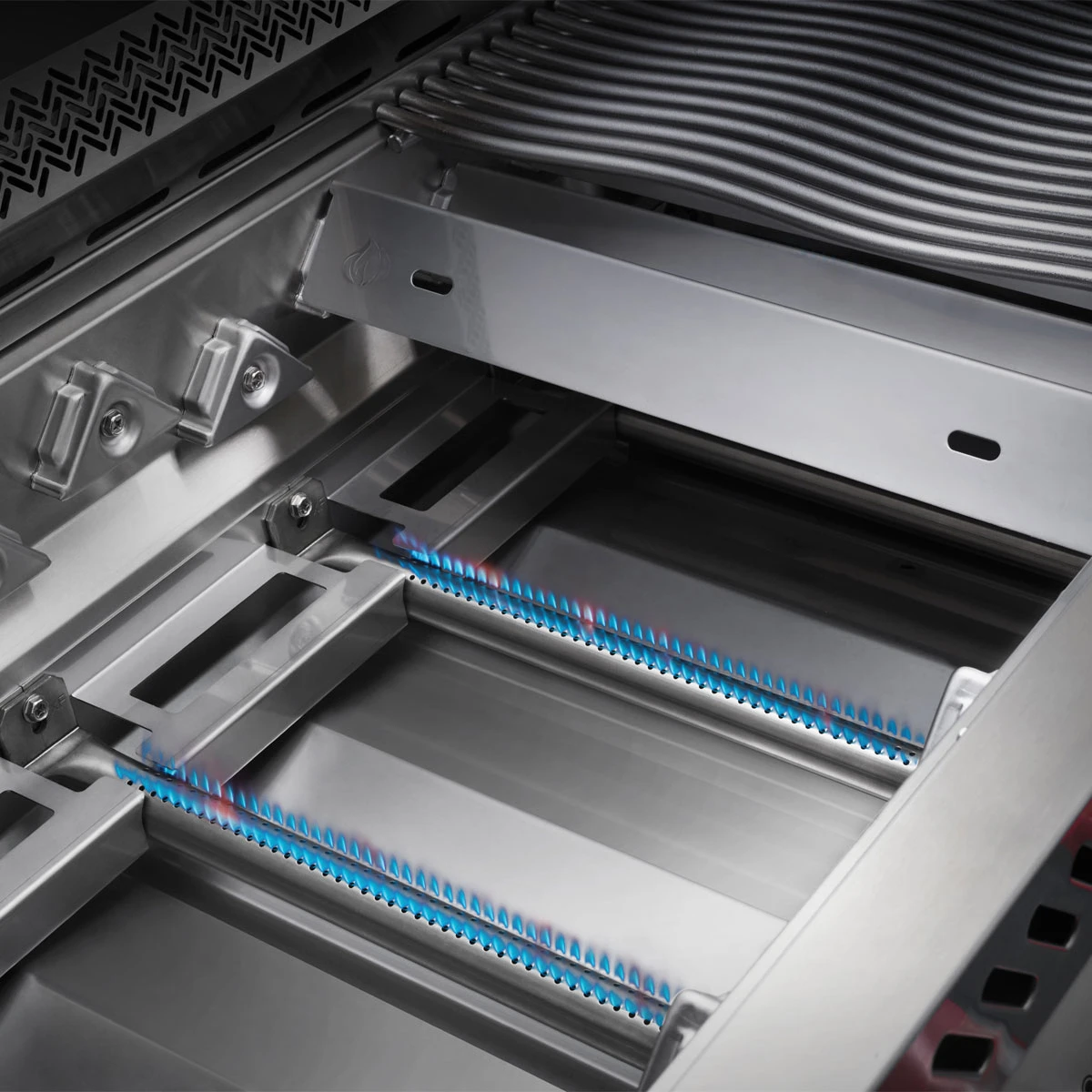 Die in zwei Ebenen angeordneten Hitzeverteiler sorgen für eine gleichmäßige Temperaturverteilung auf dem Grillrost und verringern dadurch das Entstehen sogenannter „Hotspots“.