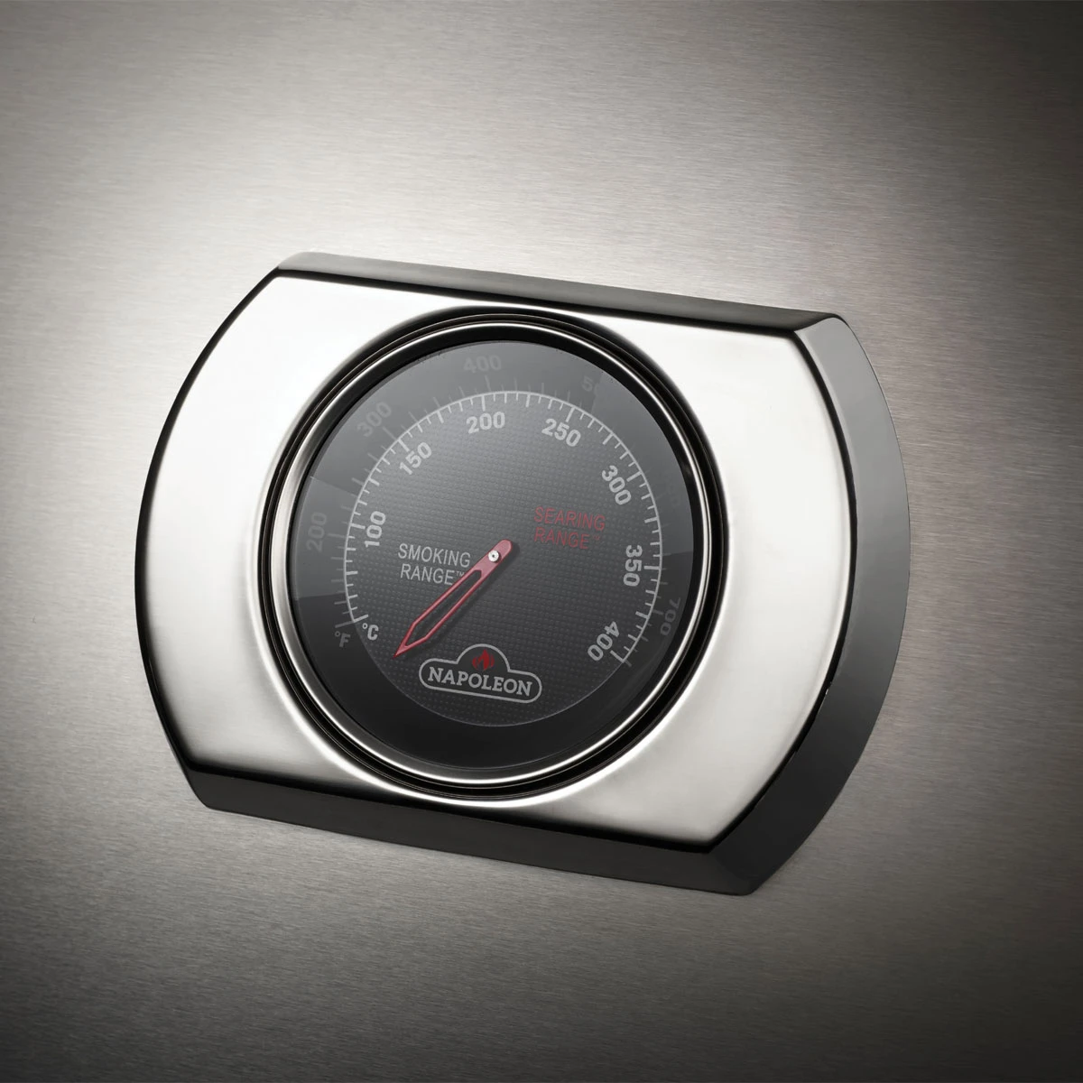 Das mehr als verlässliche ACCU PROBE Thermometer von Napoleon ist im Deckel eingelassen und zeigt die Innenraumtemperatur des Gasgrills an.