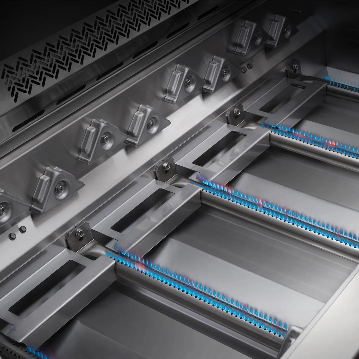 Die in zwei Ebenen angeordneten Hitzeverteiler sorgen für eine gleichmäßige Temperaturverteilung auf dem Grillrost und verringern dadurch das Entstehen sogenannter „Hotspots“.