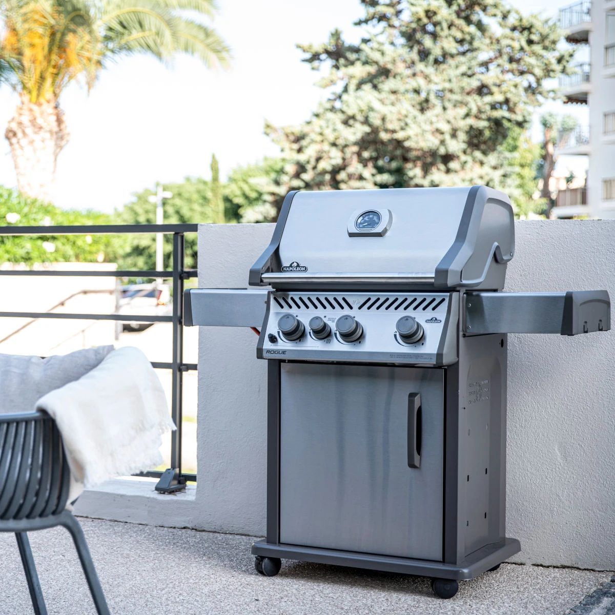 Der Napoleon Rogue XT 425 in der Edelstahl Variante ist das Bindeglied zwischen einem Einsteiger- und Profigrill. Die zuverlässige Technik aus der Prestige-Serie als Grundlage und die kompakte Bauweise des Rogue XT 425 machen diesen Gasgrill zu einem wahren Multitalent. Nebendem ist der Grill von Napoleon mit einem Infrarot SIZZLE ZONE Seitenbrenner als besonderen Zusatz ausgestattet.